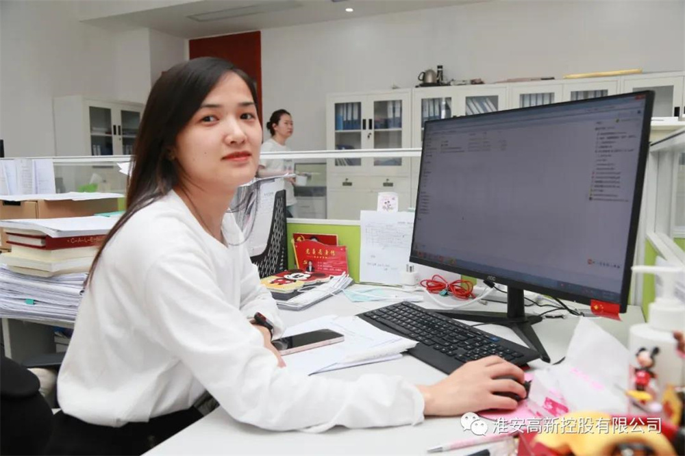 2018年7月加入淮安高新控股公司综合处,她主要负责公司党总支的党务党建、党风廉政、意识形态和文明城市创建等工作。自党群科成立以来,她深知身上的担子重了,就更需要有丰富的理论知识和实践经验来支撑,确保更好地承担这份责任。